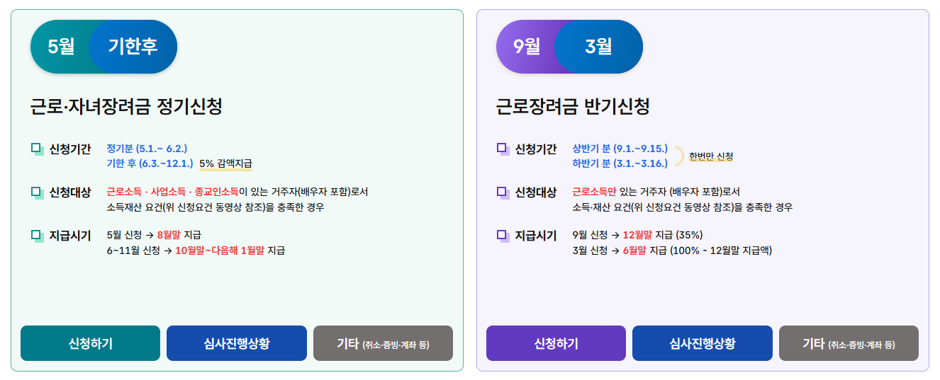 근로장려금 지급 시기 및 확인방법