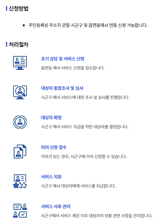 주민등록상 주소지의 읍면동 주민센터를 방문하여 신청할 수 있습니다. 이 경우 필요한 서류를 지참해야 하며, 상담사의 도움을 받아 더 정확한 안내를 받을 수 있습니다.