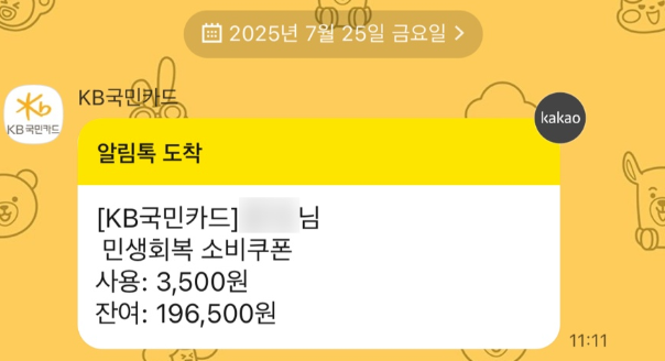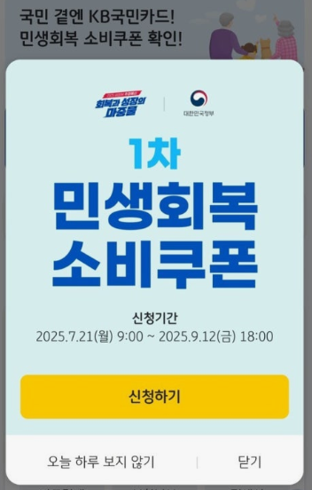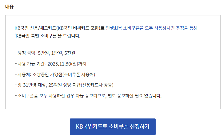 KB국민카드 민생지원금 소비쿠폰이란