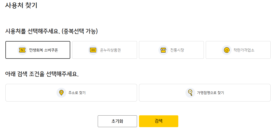 - 사용처: 정부와 협약된 오프라인 소상공인 가맹점