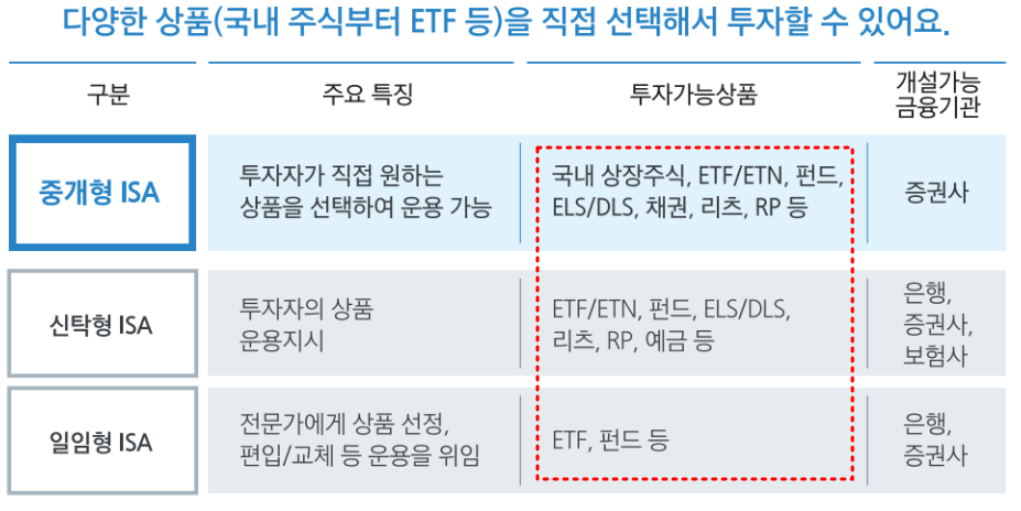 ISA계좌는 개인의 자산 관리와 세제 혜택을 극대화할 수 있도록 설계된 금융 상품으로, 투자자의 재정 상황과 목표에 따라 선택할 수 있는 세 가지 주요 유형이 있습니다.