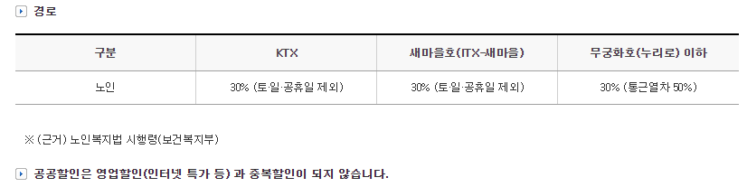 경로우대 할인은 다른 할인 혜택과 중복 적용이 불가능합니다. 또한 승차권 변경 시에는 할인 혜택이 취소될 수 있으니 주의해야 합니다.